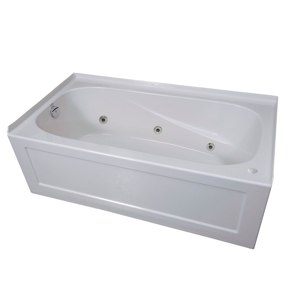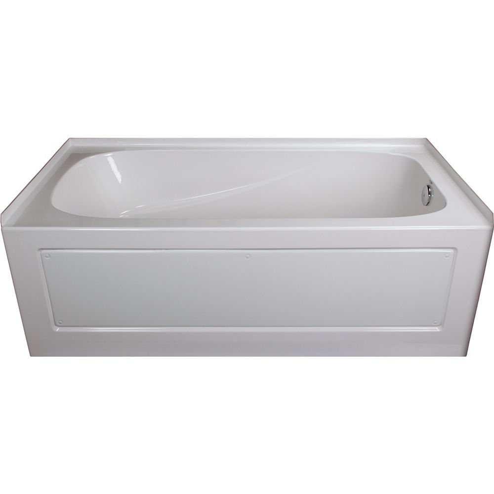 C 680 00 c 442 00. Shop mirolin prescott 60 in l x 30 in w x 20 in h white acrylic oval in rectangle skirted bathtub left drain hole at lowe s canada online store. My floor was dead nuts level but the legs on my 230 mirolin acrylic tub didn t appear to be perfect so i shimmed it level then shot some spray foam around them to hold everything securely. I purchased their bath product and the drain system is custom made wont fit into 90 of homes and surely not condos drain is plastic and very poorly cheaply glued together also forget about any help with customer service they send you back to store you bought the item from mirolin products definitely a strong no save yourself money and a lot of problems.